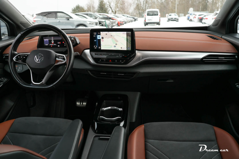VW Id.4, 2022. gada Pro modelis. 204zs, 82/77kWh baterija, nobraucamais attālums 380-480km (WLTP-517km). Baterijas veselība (SoH) 93%, ko apliecina oficiāls pārbaudes sertifikāts. Ādas/Alcantara salons,Kamera, sēdekļu apsilde, stūres apsilde, Acc adaptīvā kruīza kontrole, autonomā apsilde. Tikko no Nīderlandes, bez nobraukuma pa Latviju, ar oriģinālu un pierādāmu nobraukumu, ir pieejama servisu vēsture.